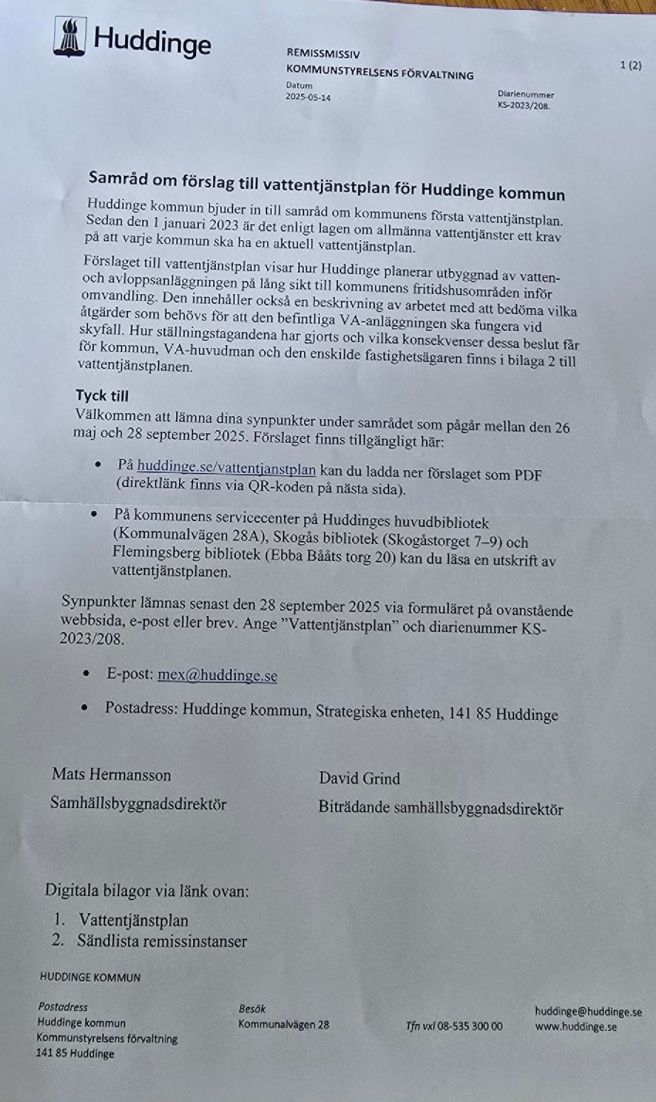 Mer info på http://www.huddinge.se/vattentjanstplan